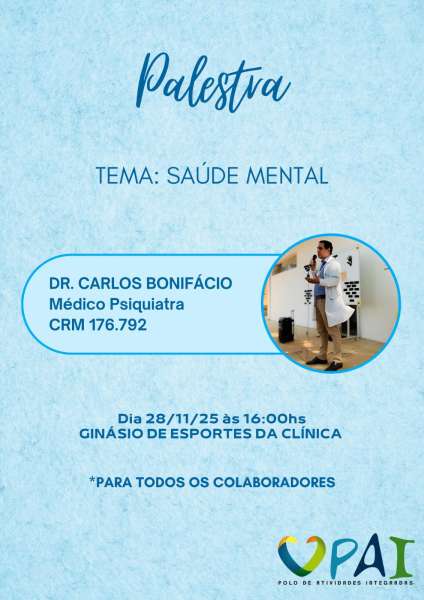 O evento reuniu os colaboradores da clínica e proporcionou esclarecimentos importantes sobre um assunto atual e cada vez mais presente na sociedade. A atividade integrou a programação do Polo de Atividades Integradas (PAI) e reforçou o compromisso da instituição com a informação e o cuidado à saúde mental de todos.