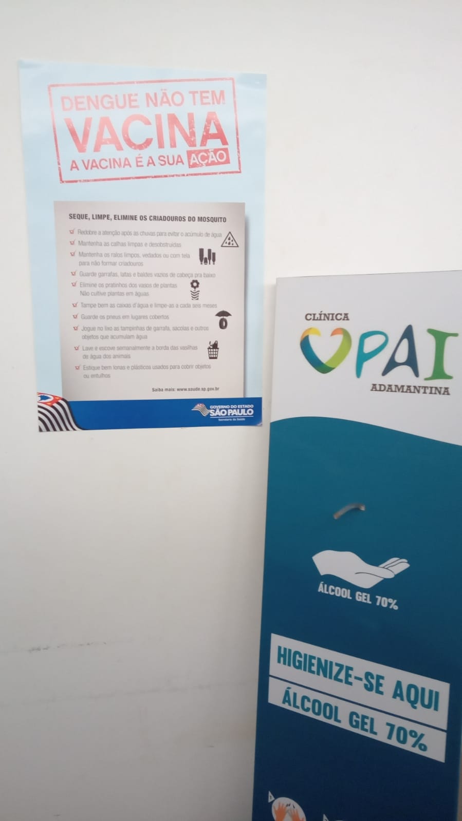 Diversos cartazes disponibilizados pelo Ministério da Saúde foram expostos para os colaboradores da Clínica Pai, afim de conscientizar na luta contra a dengue.