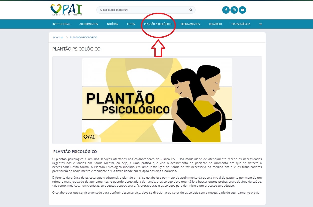 Saiba mais sobre nosso Plantão Psicológico clicando (AQUI)