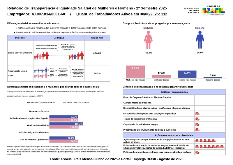 O Relatório de Transparência Salarial será amplamente divulgado em nossos canais oficiais, incluindo este site e redes sociais, assegurando que todos(as) os(as) trabalhadores(as) e demais partes interessadas possam ter acesso.