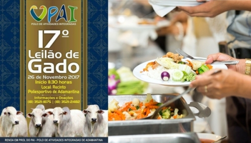 O próximo domingo (26) será marcado por uma um dia dedicado ao PAI Nosso Lar, com Almoço Beneficente, das 11h30 às 13h30, seguido do 17º Leilão de Gado, que acontecem no Recinto Poliesportivo.