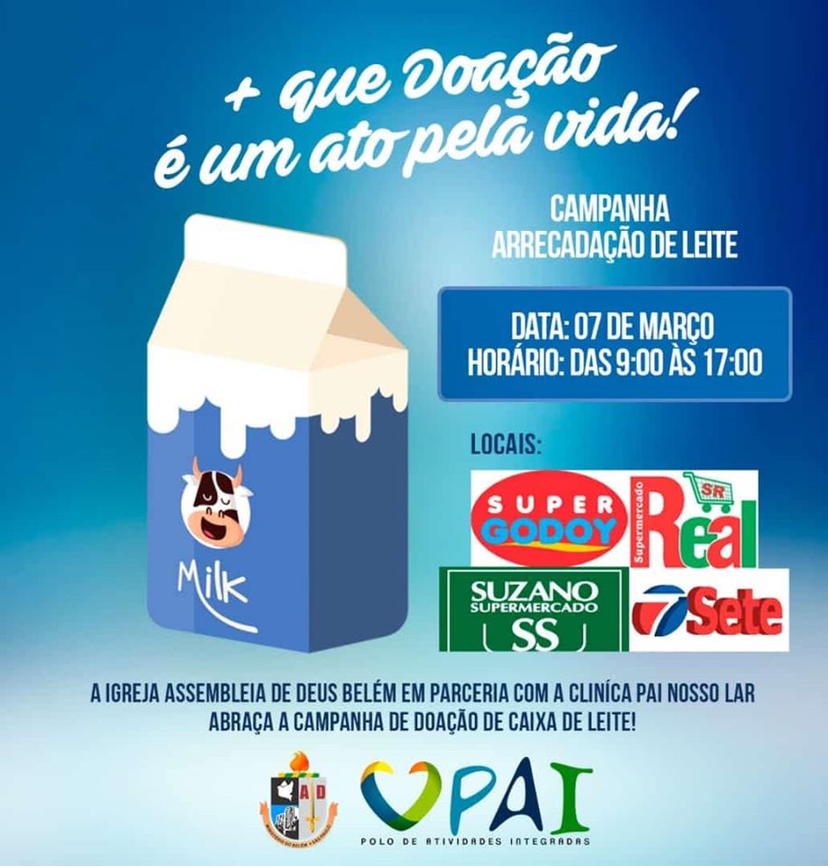 Em um culto de ação de graças, a Igreja Evangélica Assembleia de Deus, Ministério do Belém em Adamantina, entregou 1.648 litros de leite para a Clínica PAI (Polo de Atividades Integradas) Nosso Lar. O produto foi arrecadado por meio da campanha denominada ‘+ que doação, é um ato pela vida!’, realizada no dia 7 de março.