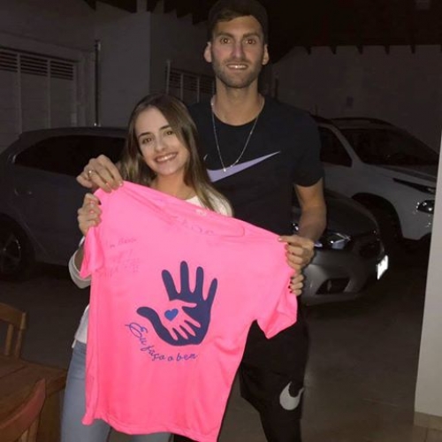 Em férias em nossa região, o jogador de futebol Léo Baptistão, atacante do RCD Espanyol de Barcelona, SAD, autografou uma camiseta da nossa instituição, que vai fazer parte da ação que iremos divulgar, oportunamente, para arrecadar fundos para nossa instituição. Ele jogou pelo Rayo Vallecano, Atlético de Madrid, Betis, Villarreal e agora é o camisa 11 do Espanyol. O autógrafo foi conseguido por iniciativa e colaboração da sua tia, Tatiana Micali. Na foto, Léo Baptistão com a prima Ana Micali.