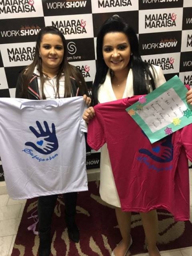 Maiara e Maraisa receberam com carinho, em Adamantina, as camisetas da nossa instituição! Agradecemos à dupla pelo carinho.