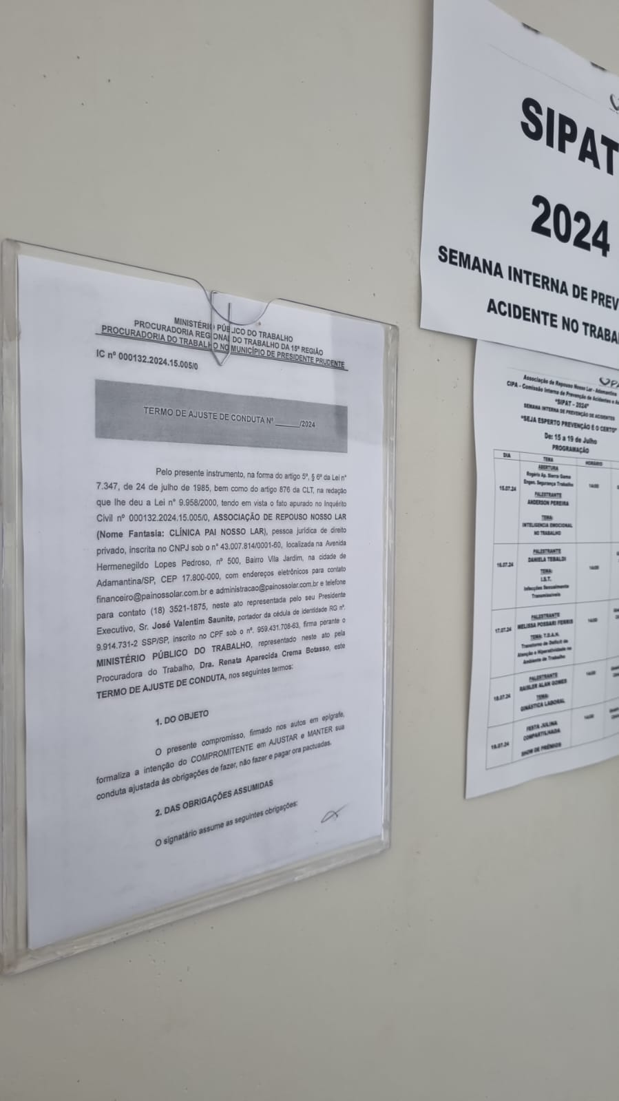 Termo de Ajustamento de Conduta, firmado entre o Ministério Público do Trabalho e a Associação de Repouso Nosso Lar. O Termo de Ajustamento de Conduta - TAC, esta ao lado dos relógios de ponto, caso alguém tenha alguma duvida, procure o RH, para mais esclarecimentos.